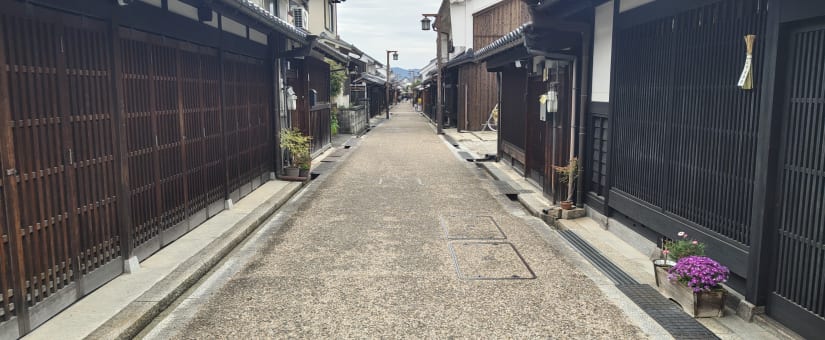 今井町は、国の重要伝統的建造物群保存地区にも指定されている、町家が並ぶ江戸の雰囲気の町並みです。